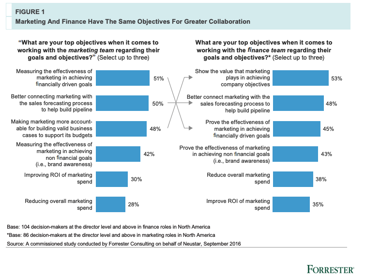 The Forrester Report addresses these three activities to bring finance and marketing closer together: